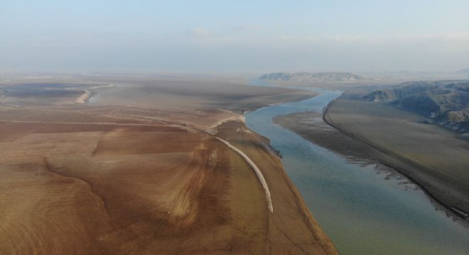 Ülke genelinde olduğu gibi Elazığ'da da kurak giden mevsim şatları nedeniyle Keban Baraj Gölü'nü besleyen Murat Nehri adeta dereye döndü.