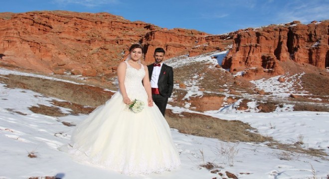 Yeni evlenen çiftler albümlerinin çekimlerini Narman Kırmızı Periler Diyarında yapıyorlar. Kırmızı periler diyarında kar ayrı bir güzellik katıyor