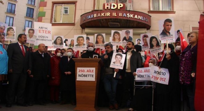 Çocuklarının terör örgütü PKK mensupları tarafından dağa kaçırıldığı iddiasıyla 3 Eylül 2019'dan bu yana farklı kentlerden Diyarbakır'a gelerek HDP il binası önünde oturma eylemi yapan aile nöbeti 849'uncu gününde de devam ediyor. Ailelerin sayısı çığ gibi büyürken Hakkari’den gelen aile ile birlikte sayı 250’ye yükseldi. Aileler, 250’inci aile birlikte terör yürüyüşü düzenledi.