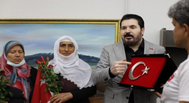 Program sonunda Ağrı Belediye Başkanı Savcı Sayan evlat nöbetindeki ailelere Türk bayraklı plaket takdim etti.