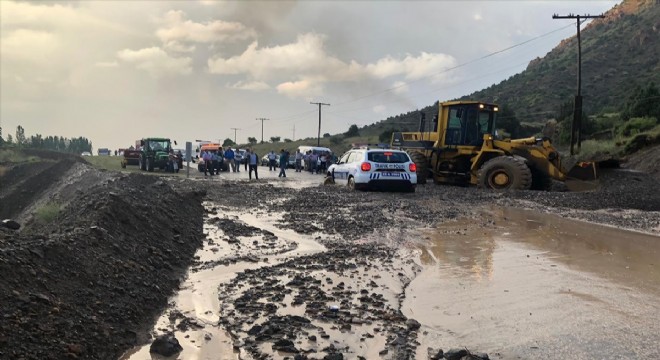 Vatandaşlara da zor anlar yaşatan sağanak dolayısıyla Erzurum-Ardahan kara yolunun Oltu ilçesi Yusuf Ziyabey Mahallesi mevkisinde su birikintisi oluştu.