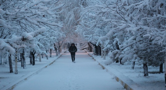 Kar yağışıyla Oltu’da kartpostallık görüntüler oluştu.