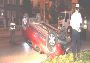Mucura kapılan otomobil takla attı