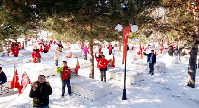 Büyük bir heyecan ve coşkuyla geçen ziyarette şehitlere Fatihalar okudular. İstiklal Marşı da okuyan çocuklar bu özel güne anlam katmanın huzuruyla ziyareti tamamladılar.