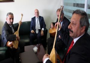 Erzurumlu halk ozanları Rahim Sağlam, İhsan Yavuzer, Mehmet Üryani ile İpek Yolu Halk Ozanları Derneği Başkanı Hatem Aksakallı, Erzurum Büyükşehir Belediye Başkanı Mehmet Sekmen'e hayırlı olsun ziyaretinde bulundu.