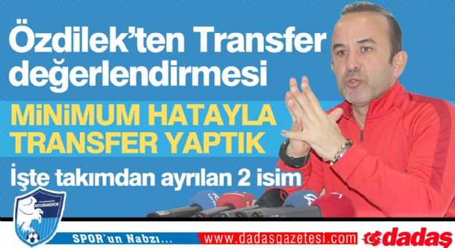 Auremir ve Khubulov ile yolların ayrılacağını açıklayan Özdilek, "Auremir ile ilgili bir tasarrufumuz olacak kendisi ailevi sebeplerden dolayı ülkesine dönmek istediğini söyledi. Birey hiçbir şeydir ama aile çok şeydir dolayısıyla aile olunca birçok şeyden feragat edebiliyorsunuz. Auremir ile ilgili bugün bir karar alacağız. Khubulov ile de ilgili bir düşüncemiz var. Yönetici arkadaşlar onunla da görüşüyorlar. Eğer onun da yaklaşımı olursa yollarımızı ayırmayı düşünüyoruz” ifadelerini kullandı.