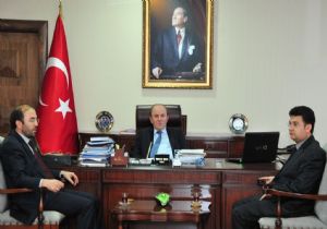 MÜSİAD Erzurum Şubesi yönetim kurulu üyeleri, Vali Sebahattin Öztürk'e nezaket ziyaretinde bulundu. Şube Başkanı Dr. Hüseyin Bekmez, başkan yardımcıları Sıddık Takar, Sunay Yıldırım, Taner Bayır ve yönetim kurulu üyelerinden A. Cüneyt Güvenli, Altan Arslan Yavuz Selim Turan, Yakup Şahintürk ile Genç MÜSİAD Başkanı Emre Durmazpınar Vali Sebahattin Öztürk'ü makamında ziyare etti. MÜSİAD Başkanı Dr. Bekmez, iş adamlarının yerel sorunları ile çevre ülkelerle olan itlahat ve ihracattaki sorunları dile getirdi. Erzurum'a 300 kilometre mesafede 5-6 tane ülkenin bulunduğuna dikkat çeken Dr. Bekmez, "Bu ülkeler Sivas'tan daha yakın. Buna rağmen henüz bu ülkelere gitmeyen iş adamlarımız var. Bunları belirli organizasyonlarla bu ülkelere götürüp oradaki iş yatırımcı adamları ile tanıştırmak karşılıklı iş görüşmelerini sağlamalıyız. Bu konuda sizden de destek bekliyoruz. Sizin de aramızda olacağınız geniş katılımlı bir heyetle önümüzdeki aylarda bu ülkelere gitmek istiyoruz "dedi.