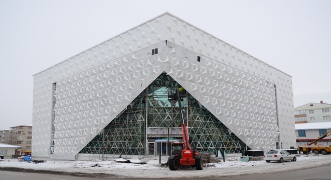 Palandöken Belediyesinin inşa ettiği İkinci Kültür Merkezi tam bir görsel tasarım harikasına dönüşen devasa yapı, dış cephe kaplamalarının da yapılmasıyla birlikte göz kamaştırmaya başladı.