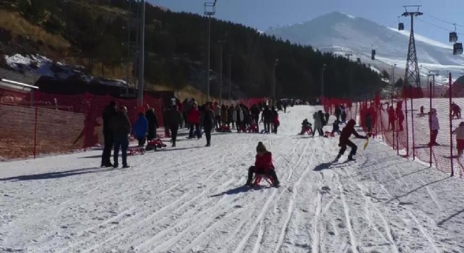 Okulların ara tatile girmesiyle karnelerini alan öğrenciler, aileleriyle beraber Palandöken Kayak Merkezinde kayağın tadını çıkardı.