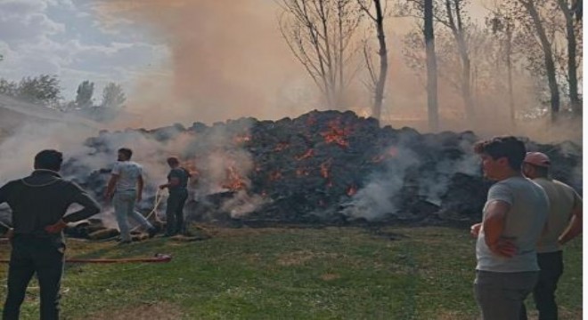 Pasinler ilçesine bağlı Büyükdere mahallesinde çıkan yangında ot yığınları yandı.