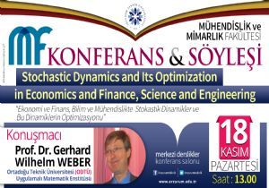 Erzurum Teknik Üniversitesi(ETÜ) Mimarlık ve Mühendislik Fakültesi Söyleşi ve Konferans etkinlikleri devam ediyor. Etkinlikler kapsamında 18 Kasım Pazartesi günü  ODTÜ Uygulamalı Matematik Enstitüsü  Öğretim Üyesi Prof. Dr. Gerhard Wilhelm Weber ‘Ekonomi ve Finans, Bilim ve Mühendislikte Stokastik Dinamikler ve Bu Dinamiklerin Optimizasyonu’ konusunda Mühendislik ve Mimarlık Fakültesi öğrencileriyle bir söyleşi yapacak.