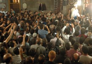 Cami imamı Sakalı Şerif'i elinde tutarken, vatandaşlar ellerini Sakalı Şerif'e sürerek dualar okudu. Bazı kişilerin ise, Peygamber Efendimizin Sakal'ı Şerif'ini cep telefonlarıyla fotoğrafını çekmeye çalışmaları izdihama sebep oldu. Kalabalığın arasında kalan çocuklar ezilme tehlikesi atlattı. Kalabalığı elleriyle de iterek uzaklaştırmaya çalışan cami imamı, sık sık uyarıda bulundu.