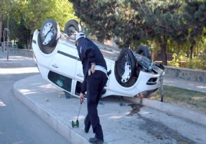 Erzurum'da, veteriner hekimin kullandığı otomobil dört takla atarak kaldırıma çıkarken, bu sırada oyun oynayan çocuklar kaçarak canlarını zor kurtardı.