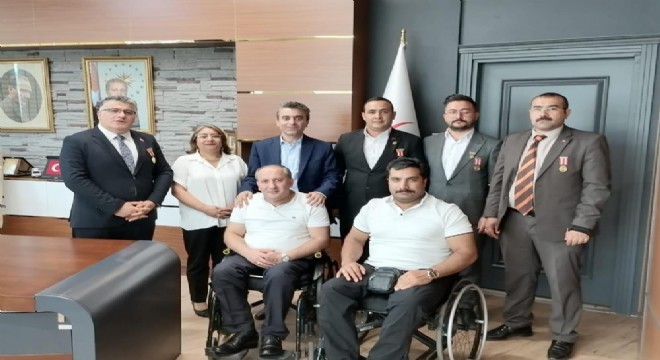 Türkiye Harp Malulü Gaziler Şehit Dul ve Yetimleri Dernek Başkanı Recep Akgül, Yönetim Kurulu ile birlikte, Erzurum İl Sağlık Müdürlüğünü ziyaret ederek, İl Müdür Gürsel Bedir’e, Hastanelerde Şehit Aileleri ve Gazilere verilen hizmetten dolayı teşekkür ettiklerini belirterek, “Erzurum Şehir Hastanesinde Şehit Aileleri, Gazilerimiz ve Engelli kardeşlerimizin muayene ve tedavilerinde oluşan aksaklıkları, meydana gelebilecek eksiklik ve olumsuzlukları 2021 yılında konuşarak istişarelerde bulunmuştuk. 1 Ocak 2022 tarihinde ŞEHİT-GAZİ ve ENGELLİ İrtibat ve Destek Birimi İl Müdürümüz Dr. Gürsel Bedir ve Hastane Baş Hekimimiz Doç. Dr. İbrahim Hakkı Tör tarafından hizmete alınmıştı. Bundan dolayı İl Müdürümüz ve Başhekimimize Şehit-Gazi ve Engelli Ailelerimiz adına teşekkürlerimizi ifade ederek, plaket takdiminde bulunduk. Artık randevu derdimiz yok, beklemek yok. Misafirperverliğinden dolayı Sağlık İl Müdürümüze ve Şehir Hastanesi Başhekimimize camiamız ve derneğimiz adına çok teşekkür ediyorum.” dedi.