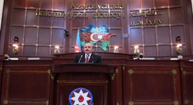 TBMM Başkanı Mustafa Şentop, Azerbaycan Meclisi’nde konuştu. Şentop, “Sizleri en kalbi duygularımla, hürmetle, muhabbetle selamlıyorum. Güzel Türkçemizde ‘Önce selam, sonra kelâm’ derler. Ben de evvelâ üzerimdeki selamları sizlere iletmek istiyorum. İlk olarak, 1990’ların başından itibaren Karabağ davasına sahip çıkan, bugün de Azerbaycan’ın haklı mücadelesine var gücüyle destek veren Cumhurbaşkanımız Sayın Recep Tayyip Erdoğan’ın muhterem heyetinize ve bütün Azerbaycan’a selamlarını getirdim. Karabağ toprağının ait olduğu ellere geçmesi için dua eden, Azerbaycan’ın acısını yüreğinde hisseden, sevincini kendi sevinci sayan ve Nuri Paşa’nın şahs-ı manevîsini yüreğinde taşıyan aziz milletimizin selamlarını getirdim. 100 yıl önce, vatanımızın bir kısmı işgal altındayken ‘Ya istiklâl Ya ölüm’ şiarıyla harekete geçen, milletimizin azim ve kararlılığına istinad eden Millî Mücadele’nin karargahı Türkiye Büyük Millet Meclisi’nin desteğini, duasını, selâmını ve zafere kadar birlikte hareket etme iradesini getirdim. Bu iradenin bir tezahürü olarak şu anda bu Yüce Meclis’te, Azerbaycan’ın haklı davasına ve şanlı mücadelesine destek veren farklı partilerden milletvekili arkadaşlarımızla birlikte bulunuyoruz. Sizi temin ederim ki, bu yıl açılışının 100’üncü yıl dönümünü idrak ettiğimiz Türkiye Büyük Millet Meclisimizin mensuplarının kahir ekseriyeti, şu an, bu salonda bulunmayı canı gönülden istemektedir. İnşallah bütün milletvekillerimizin hazır bulunacağı o büyük içtimaı, iclası, işgalden kurtarıldıktan sonra hep birlikte Karabağ’da yapalım. Hülâsa, milletimizin "Bir Kere Yükselen Bayrak Bir Daha Yere İnmez " diyerek Azerbaycan’ın istiklal ve hürriyetine hayatlarını adayan büyük liderler Mehmet Emin Resulzade ve Haydar Aliyev’in kutlu hatıralarına tazim ve hürmetlerini getirdim. Milli istiklalin habercisi, Karabağ’ı “Anne” bilen, büyük şair Bahtiyar Vahapzade’nin de dediği gibi bir ananın iki oğlu, bir emelin iki kolu, bir millet iki devlet, aynı arzu aynı niyet, birdir bizim her halimiz diyerek sevincimizi olduğu gibi melalimizi de paylaşmaya geldim. Öncelikle, 12 Temmuz’da başlayıp 27 Eylül sabahından itibaren iyice şiddetlenen, Ermenistan’ın yönettiği terör çeteleri eliyle kardeş Azerbaycan’a yönelen saldırılardan büyük bir üzüntü duyduğumu ifade etmek isterim. Bu vesileyle, Ermenistan saldırılarında şehadete yürüyen bütün kardeşlerimizi rahmetle anıyor, yaralılarımıza Cenab-ı Hak’tan acil şifalar niyaz ediyorum. Geçmişten bugüne vatanları uğruna can veren, cefa çeken tüm balalarımızı, bacılarımızı ve yiğitlerimizi ihtiram ve hayır ile yâd ediyorum. Aziz Azerbaycan halkına başsağlığı ve sabırlar diliyorum.Bu meşakkatli vakitlerde maslahatlaşmak, istişare etmek için yaptığınız davet ile bana yüce Meclisinize hitap etme şerefini verdiğiniz için en kalbi şükranlarımı sunuyorum. Hürmetli kardeşlerim, Kadim topraklarınızın beşte birinin işgal altında olduğu, bir milyondan fazla kardeşinizin ocaklarını, yuvalarını terk etmek zorunda kaldığı otuz yıl geçirdiniz, otuz yıl geçirdik. İstiklalinizin tadını dahi doyasıya yaşayamadınız. Ancak Cenab-ı Hakk’ın Yüce Kur’an’da buyurduğu gibi, “Gevşeklik göstermeyin, üzüntüye kapılmayın. Eğer inanmışsanız, üstün gelecek olan sizsiniz.” Türkiye de bugüne kadar olduğu gibi bundan sonra da haklı davasında ve vatan savunmasında can kardeşlerinin yanında yer alacaktır. Türkiye ve Azerbaycan, dünyada başka iki ülke arasında benzeri olmayan yakın bir ilişkiye sahiptir. “Tek millet, iki devlet” düsturu sadece bir slogan, sadece tarihî bir tespit değildir; aynı zamanda diplomasiden sahaya her alanda Türkiye - Azerbaycan ilişkilerine istikamet veren, yaşayan, canlı bir ilkedir. Bu irade, gelişmelerin her aşamasında başta Sayın Cumhurbaşkanımız olmak üzere hepimiz tarafından açık bir şekilde ifade edilmiştir. 28 Eylül Pazartesi günü Türkiye Büyük Millet Meclisinde grubu bulunan dört siyasi partimizin imzasıyla yayınlanan bildiride bu kararlılık bir kez daha ortaya konulmuştur. Meclis olarak Azerbaycan’ın yanında olduğumuzu tüm dünyaya ilan ettik. Ermenistan’ın bir an önce işgal ettiği Azerbaycan topraklarından çıkmasının, komşularına saldıran ve bölge barışını tehdit eden bir ülke olarak hareket etmekten vazgeçmesinin zaruretini bir kez daha haykırdık. Bildiriye imza atan partilerimizi temsilen milletvekillerimiz, sizlerle olan duygudaşlıklarını ve desteklerini bir kez de şahsen, yüz yüze ifade etmek için bugün aranızda bulunuyorlar. Azerbaycan halkının güçlü iradesinin muhterem temsilcileri, Yıllardan beri Kafkasya’da barışın ve huzurun en büyük düşmanı olan, başta Birleşmiş Milletler ve diğer bazı uluslararası örgütlerin kararlarına rağmen işgal ettiği topraklardan çıkmayan, işgali ve terörü tam bir devlet politikası haline getiren Ermenistan; işgal ve katliam şeceresine yeni bir halka eklemiş, sivilleri ve masumları öldürmeyi bir devlet politikasına dönüştürmüştür. Bu terör devleti, uluslararası hukuk tabiriyle bu haydut devlet, Moskova’da insani saiklerle alınan ateşkes kararına rağmen sivilleri hedef alan saldırılarını sürdürdü. Pazar yerlerini, sokakları, evleri hatta cenaze definlerini dahi bombalamaya devam etti, masumların canına kastetti” dedi.