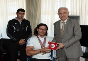 Azerbaycan’ın başkenti Bakü de 24. sü düzenlenen Bilek Güreşi Avrupa Şampiyonasında başarılı sonuçlar alan üniversite idari personellerinden Gökhan Seven, Atatürk Üniversitesi Rektörü Prof. Dr. Hikmet Koçak’ı makamında ziyaret etti.