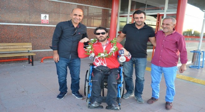 Milli sporcu, şampiyona dönüşü memleketi Erzurum’da çiçeklerle karşılandı.