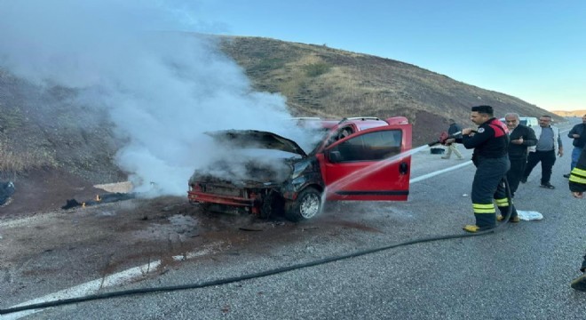 Olay, Erzincan - Gümüşhane kara yolundaki Ahmediye geçidinde meydana geldi. Alınan bilgiye göre seyir halinde ilerleyen hafif ticari aracın motor kısmından bir anda dumanlar yükselmeye başladı. Araç sahibi aracını sağa yanaştırırken dumanlar kısa sürede yerini alevlere bıraktı. Kendi çabaları yetersiz kalan sürücü durumu 112 Acil Çağrı Merkezi’ne bildirdi. Olay yerine gelen itfaiye ekipleri, araçta çıkan yangını söndürerek soğutma çalışması yaptı. Yangında yaralanan olmazken araç tamamen kullanılamaz hale geldi.