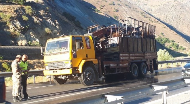 Erzincan’da seyir halindeki kamyonun kasasında bulunan hurda malzemeler yandı. Yangın nedeniyle Erzincan-Erzurum karayolu bir süre ulaşıma kapandı.