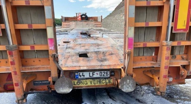 Seyir halindeki tırın çekicisi alev aldı
