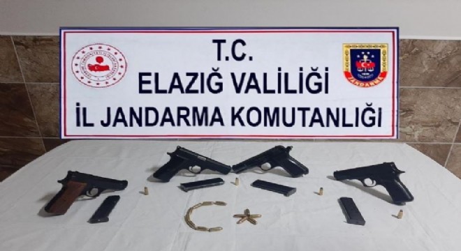 Elazığ İl Jandarma Komutanlığı ekipleri, silah kaçakçılığı ihbarı aldı. Olayla ilgili kent genelinde operasyon başlatan ekipler, iki şüpheliyi tespit etti. Jandarma ekiplerinin şüphelilere yönelik başlattığı operasyonda 4 adet ruhsatsız tabanca, 4 şarjör ile 17 adet 9 milimetre çapında tabanca fişeği ele geçirdi. Olayla ilgili gözaltına alınan 2 şüphelinin işlemlerinin devam ettiği kaydedildi.