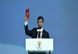 Sözleşmenin yer aldığı kitabı gösteren Başbakan Davutoğlu, İşte AK Parti vizyonunun Yeni Türkiye Sözleşmesi, 2023 Yeni Türkiye Sözleşmesi" ifadesini kullandı.