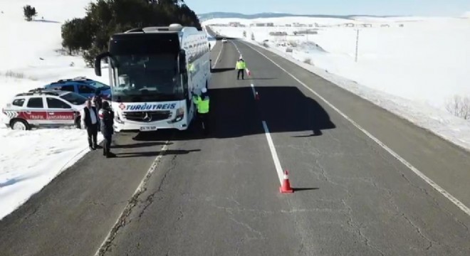 Kars'ta yolcu otobüslerine yönelik denetimler artırıldı. Sivil jandarma asayiş ve trafik ekipleri, şehirlerarası yolcu taşımacılığı yapan otobüsleri yakın takibe aldı.