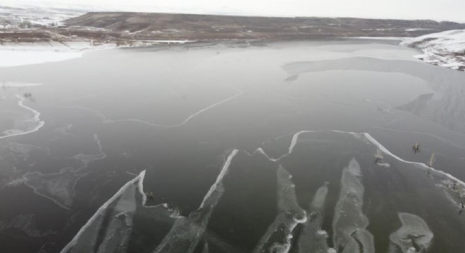 Kars’ın soğuğu bir günde baraj dondurdu. Kars Barajı’nın yüzeyi, aşırı soğuktan buz tuttu.
