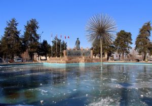 Soğuk havaların etkili olduğu Erzurum'da hava sıcaklıkları eksi 13 dereceye kadar düşerken, süs havuzları ve şadırvanlar buz tuttu.