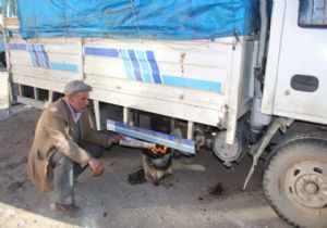 Araçların depolarındaki don, pürmüz ve tenekede ateş yakılarak çözülmeye çalışıldı.