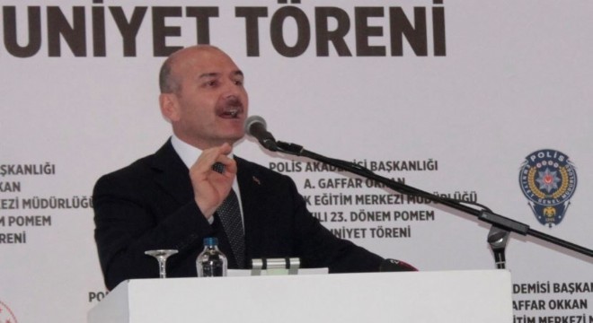 Mezuniyet töreni nedeniyle Diyarbakır’a geldiğini belirten Bakan Soylu, “Bugün bu okulda 592 öğrencimizi mezun ediyoruz. Geçtiğimiz hafta sonu dahil 12 bin 672 evladımız sınavlarını başarı ile verdiler ve mezuniyete hak kazandılar. İnşallah görevlerine başlayacaklardır. Şu an Türkiye'de emniyet teşkilatında 294 bin 401 emniyet personeli görev yapıyor. 17-25 Aralık sürecinden sonra yaklaşık 33 bin personel ihraç edildi ve 5 bin üzerinde personel de açıkta. Ancak 2016 yılından bu yana o açığı kapatmaya çalışıyoruz. Benzeri durum diğer kurumlarımızda da yaşandı. 15 Temmuz'da bu ülkeye zarar verdiklerini zannedenler, bu ülkede bir şeyler koparacaklarını, bu ülkenin istikametini değiştireceğini zannedenler umdukları hiçbir şeye ulaşamadılar. Acısı içimizde halen kor gibi yanan 215 vatan evladını şehit ettiler. Cenabı hak hepsine rahmet eylesin, gazilerimize şifalar ihsan eylesin. Ama biz o acıdan, o karanlık geceden biliniz ki güçlenerek çıktık. Biz o geceden sonra FETÖ'nün, PKK'nın da, uyuşturucu satıcılarının da iflahını kestik. Bugün ortada gördükleriniz bu ihanet çetelerinin kırıntılarından başka bir şey değildir. Bu yılın ilk 7 ayında 146 terörist ikna yoluyla güvenlik güçlerine teslim oldu. Geçen yılın tamamında bu sayı 110’du. Sadece bu yıl PKK terör örgütünden 87 tane üst düzey terör örgütü üyesi etkisiz hale getirildi” diye konuştu.