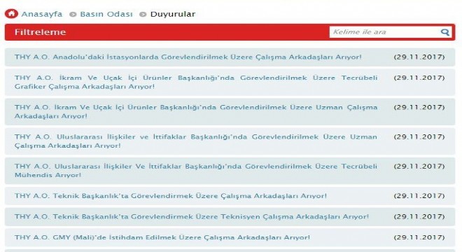 Türk Hava Yolları Genel Müdürü Bilal Ekşi sosyal medya hesabı Twitter’dan yaptığı açıklamada, THY bünyesinde farklı branşlarda personel alımının yapılacağını duyurdu. THY bünyesinde çalışmak isteyenlere çağrı yapan Ekşi, “Türk Hava Yollarının yolculuğunda her alanda görev alacak çalışma arkadaşları arıyoruz. Bu fırsatı lütfen değerlendirin” açıklamasında bulundu.