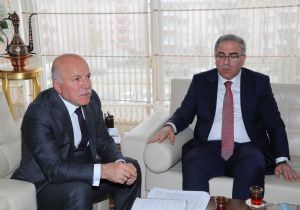 Toplu Konut İdaresi (TOKİ) Başkanı Mehmet Ergün Turan, Erzurum Büyükşehir Belediye Başkanı Mehmet Sekmen’i makamında ziyaret etti.