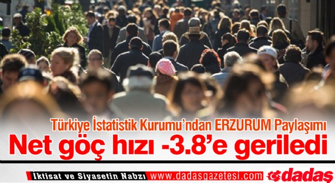TÜİK İllerin aldığı göç, verdiği göç, net göç ve net göç hızı, 2008-2018 sonuçlarını paylaştı. Erzurum’da 2016- 2017 döneminde -12.2 olan net göç hızı -3.8’e geriledi, ilin verdiği göç azaldı.