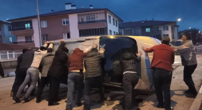 Erzurum’da bir araç, şoförünün direksiyon hakimiyetini kaybetmesi sonucu takla attı. Takla atan aracın sesini duyan mahalle sakinleri ise ters dönen aracı bir araya gelerek düzeltti.
