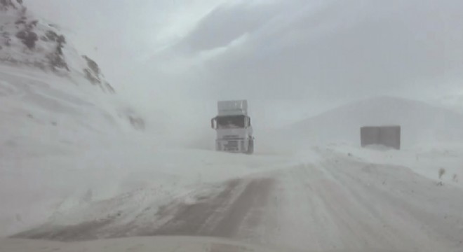 Tendürek Dağı geçidi tipi nedeniyle ulaşıma kapanırken, çok sayıda araç yolda kaldı.