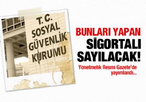 Buna göre, Türkiye İş Kurumunca düzenlenen Toplum Yararına Çalışma Programlarından yararlananlar da sigortalı sayılacak. Gençlik ve Spor Bakanlığı, Spor Genel Müdürlüğü, Türkiye Futbol Federasyonu, bağımsız spor federasyonlarınca yapılan her türlü gençlik ve spor faaliyetleriyle bu faaliyetlerle ilgili kamp, eğitim ve hazırlık çalışmalarında süreklilik arz etmeyecek şekilde görevlendirilenler ise sigortalı sayılmayacak.