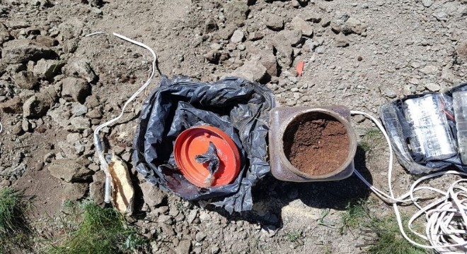 Kağızman’da güvenlik güçlerince yapılan çalışmalarda, PKK’lı teröristlerce toprağa gömülü EYP bulundu.