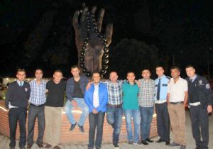Tayinci memurlar Oltu’dan ayrılmadan Oltu’nun simgesi olan Oltu taşı heykelinin önünde hatıra fotoğrafı çektirdiler.