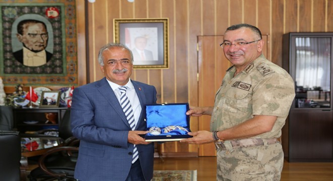 Atatürk Üniversitesi Rektörü Prof. Dr. Ömer Çomaklı, emekliye ayrılan Jandarma Bölge Komutanı Tümgeneral Dr. Güray Alpar'ı makamında ağırladı.