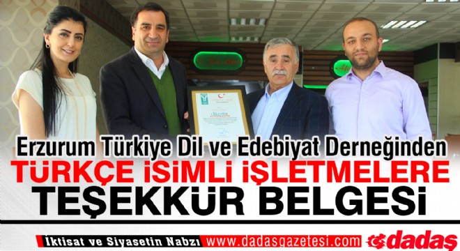 50 İşletmeye Teşekkür Belgesi vermeyi planlayan Erzurum Türkiye Dil ve Edebiyat Derneği Türkçe’nin önemine ve zenginliğine dikkat çekmek istiyor.