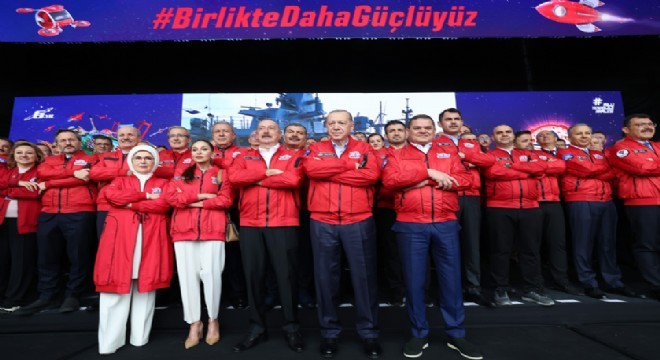 Cumhurbaşkanı Erdoğan, Türkiye'nin, her birinin ardında mühendislerin, teknisyenlerin alın teri, emeği ve azmi olan yüksek teknolojiye dayalı projelerini birer birer hayata geçirdiklerini aktararak, şunları kaydetti: "Sadece son aylarda yaşadığımız gelişmeleri sizler de gördünüz. Az önce değerli kardeşim de (Aliyev) ifade etti; Kızılelma havalandı, Togg satışa sunuldu. İşte Kızılelma, hemen karşımızda duruyor. Akıncı burada. TCG Anadolu gemimiz Deniz Kuvvetlerine teslim edildi ve TCG Anadolu son haftayı da inşallah İzmir'de geçirecek. Çok anlamlıdır, ne demek istediğimi anlıyorsunuz."