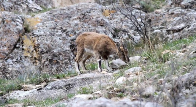 Uzundere ilçesinde, Erzurum-Artvin kara yolu üzerinde sarp arazide otlayan yabani dağ keçileri, yoldan geçen vatandaşların ilgisini çekti.