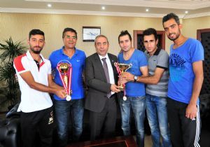 1 Temmuz - 4 Ağustos tarihleri arasında Erzurum Büyükşehir Belediyesi Olimpiyat Parkı’nda bu yıl dördüncüsü düzenlenen Doğu Kulüpleri Takım Şampiyonası’nda 26 takımın yarıştığı erkekler mücadelesinde, finalde Ağrı Gençlik Spor Kulübü’nü yenerek şampiyon olan Van Yüzüncü Yıl Üniversitesi Spor Kulübü sporcuları ile makamında bir araya gelen Rektör Prof. Dr. Battal, almış oldukları başarılı sonuçlardan dolayı mutlu olduğunu etti. Battal, “Üniversitemizin son dönemlerde özellikle sportif alanlarda başarılı sonuçlar alması bizleri gururlandırıyor. Yönetim olarak hangi alanda olursa olsun öğrencilerimizin yanındayız. Elimizden gelen tüm desteği sonuna kadar vermeye devam edeceğiz. Önümüzdeki dönemler için de yapımı tamamlanacak olan spor kompleksimiz ile çalışma alanı konusunda daha rahat imkanlara kavuşacak olan sporcularımız, eminim ki uluslar arası başarılara da imza atacaklar” dedi.