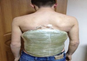 Erzurum’da polisin dikkati üzerine vücuduna streç film ile 5 kilogram 300 gram esrar maddesini saklamaya çalışan iki kişi kıskıvrak yakalandı.