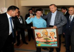 Yusuf, çizdiği resmi Başbakan Erdoğan’a takdim etti.