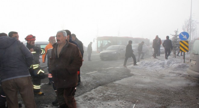 Erzurum'da sis nedeniyle görüş mesafesinin sıfır metreye düştüğü havalimanı yolunda 15 araç birbirine girdi, 4’ü ağır 5 kişi yaralandı.