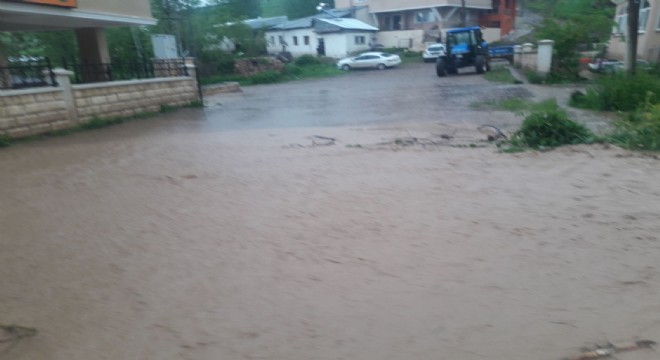 Aşkale ilçesinde etkili olan sağanak yağış iki köy arasındaki köprünün yıkılarak yolun ikiye bölünmesine neden oldu.