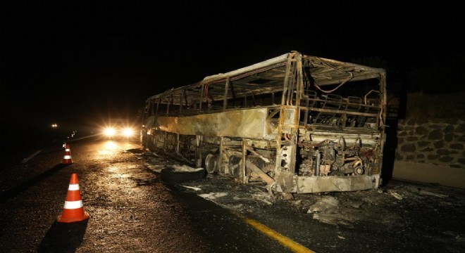 Yolcu otobüsü seyir halinde alev topuna döndü