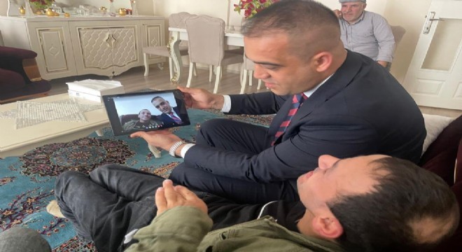 Kahraman’ı evinde ziyaret eden Yurdagül, yanında götürdüğü tablet bilgisayarı hediye ederek engelli vatandaşın bayram sevincini ikiye katladı.